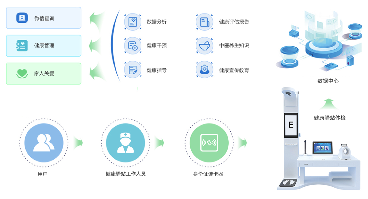 自助健康檢測,多頻次獲取實時生命體征數(shù)據(jù),全程語音菜單引導,一次性完成,高效、便捷。